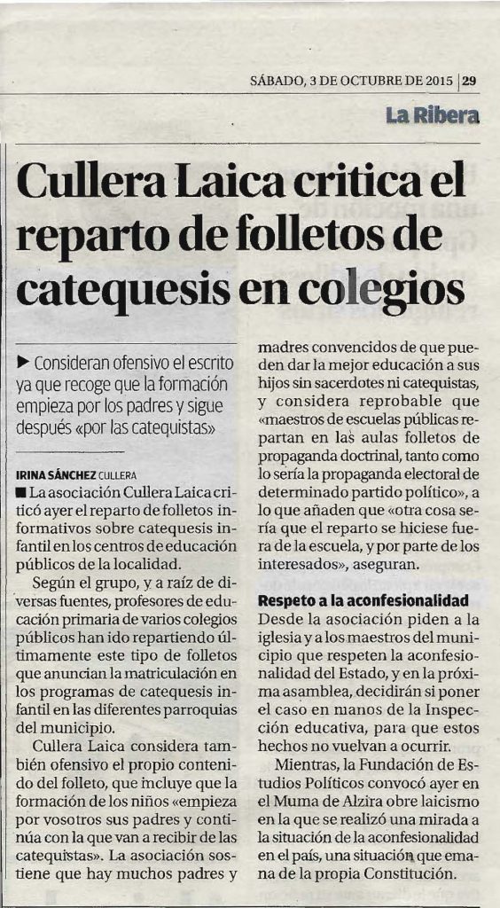 Cullera Laica participarà en les XII Jornades d’Estudis de Cullera amb una comunicació i presentació visual sobre els béns patrimonials culturals en possessió de l’entitat. La presentació està programada per …